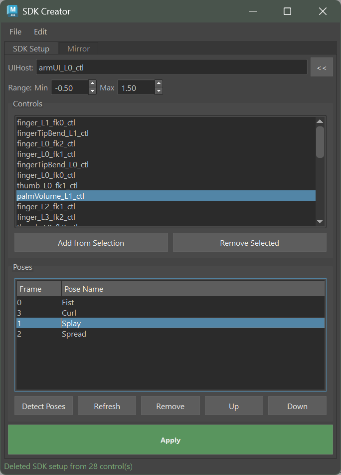 The SDK Creator is a new tool for generating Set Driven Key setups directly from timeline poses. Instead of manually keying SDK values one attribute at a time, you pose your character on the timeline and let the tool build the SDK network for you.