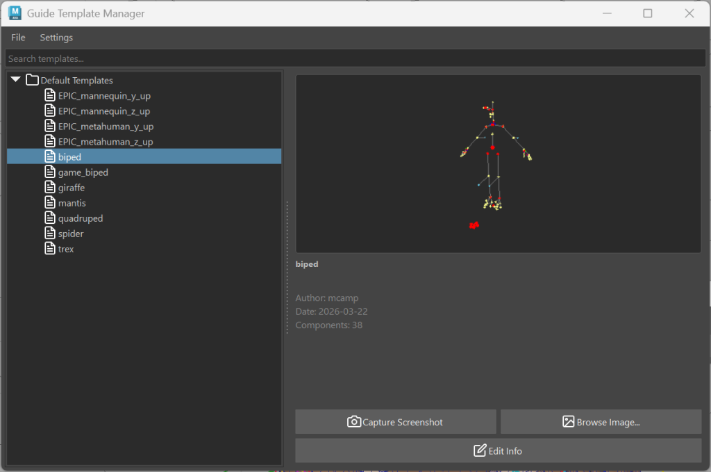 This is especially useful for studios that maintain a library of base guides for different character types — bipeds, quadrupeds, creatures — and want a visual, organized way to access them.