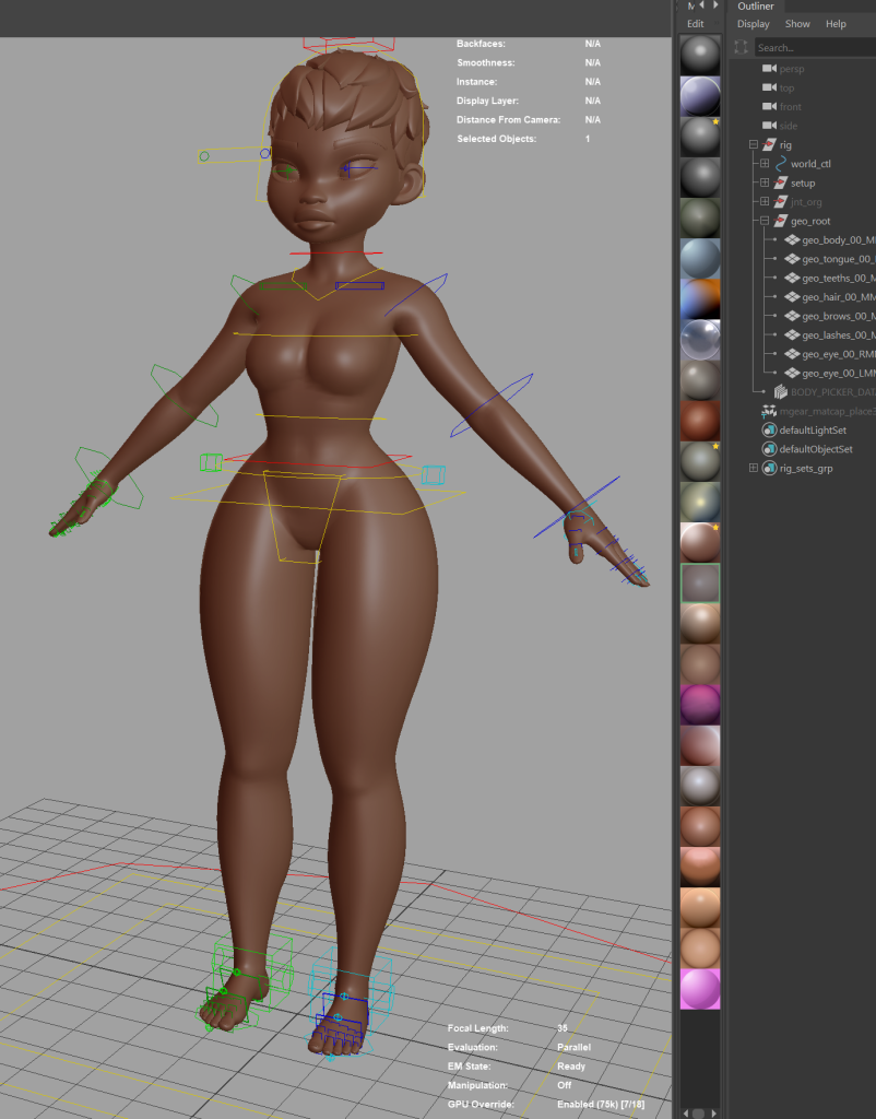 The Matcap Viewer provides a quick viewport material preview using matcap materials. It’s useful for evaluating deformation quality without the distraction of full shading or lighting — you can instantly check silhouettes and surface flow on your skinned meshes.